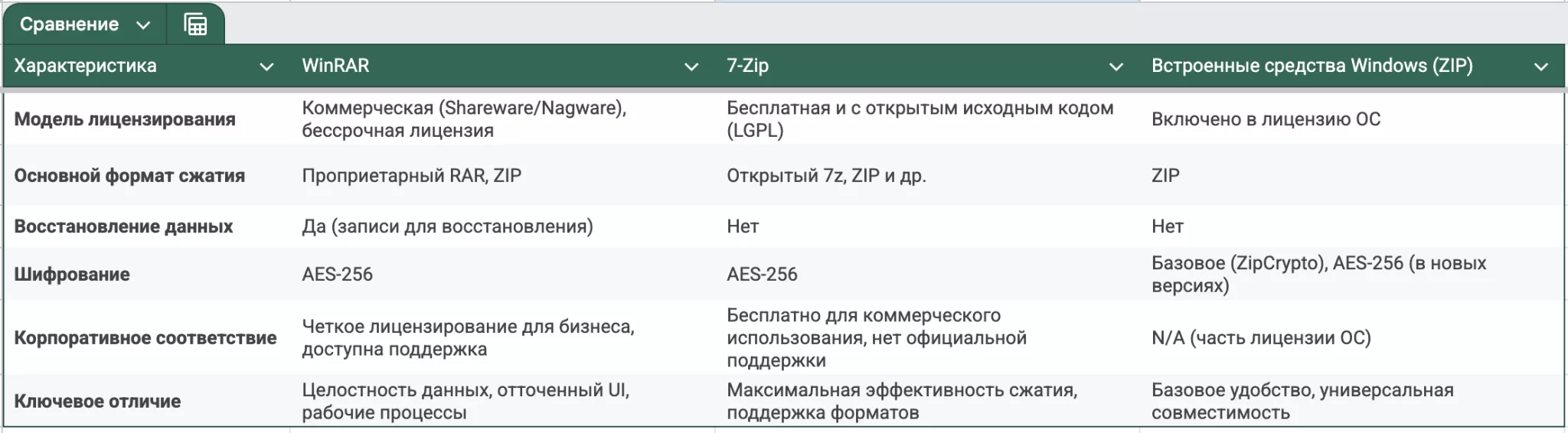 Ответ в деталях и удобстве. Многие говорят, что интерфейс WinRAR удобнее. Кроме того, WinRAR лучше работает с некоторыми задачами, например, с архивами .tar.gz, и предлагает особые функции для опытных пользователей. Для многих компаний удобство, стабильность и наличие восстановления данных важнее, чем цена.