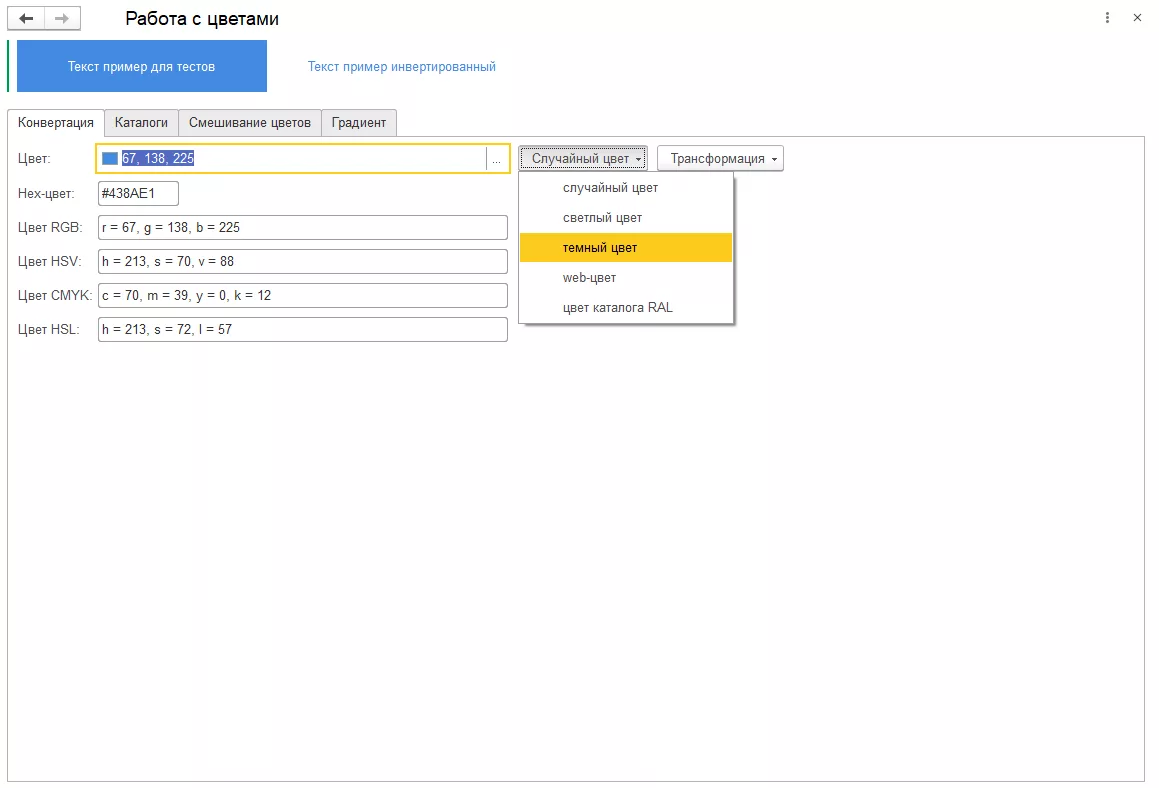 . Мне показалось логичным использовать его и в 1С. Это просто, понятно и универсально. Но оказалось, что в платформе нет готовых функций для конвертации такого формата в стандартный тип Цвет